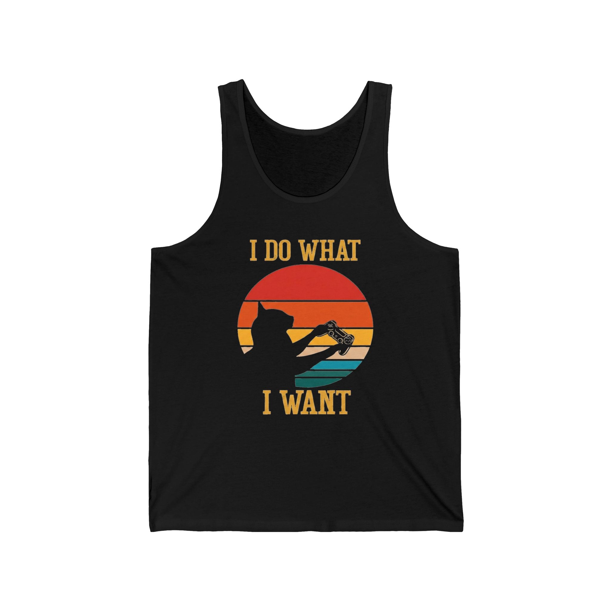 I Do What I Want Cat Tank Top — Retro Sunset Cat Sunglasses Funny Graphic Tank