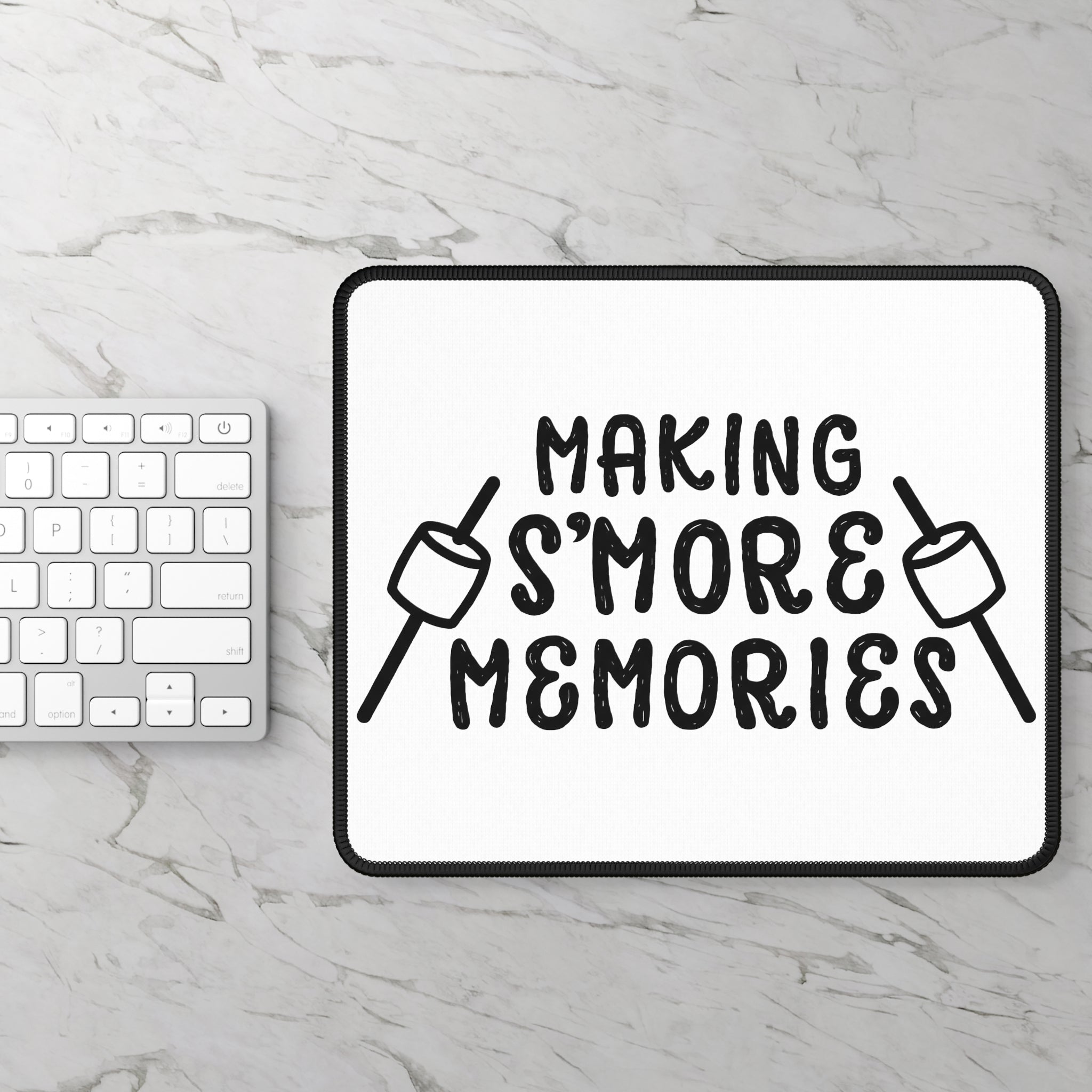 Swap the office hum for the warm crackle of a campfire every time you reach for your mouse. This compact gaming mouse pad features playful hand-lettered text—"Making S'more Memories"—and cute toasted-marshmallow icons that bring a cozy, outdoorsy vibe to your desk. The low-profile neoprene base stays put during intense clicks and quick swipes, while the smooth, full-color front gives your cursor a silky glide. Stitched edges keep the print looking neat through daily use. It’s a small touch that turns routine work or late-night gaming into something a little homier—like a mini campfire on your desktop.