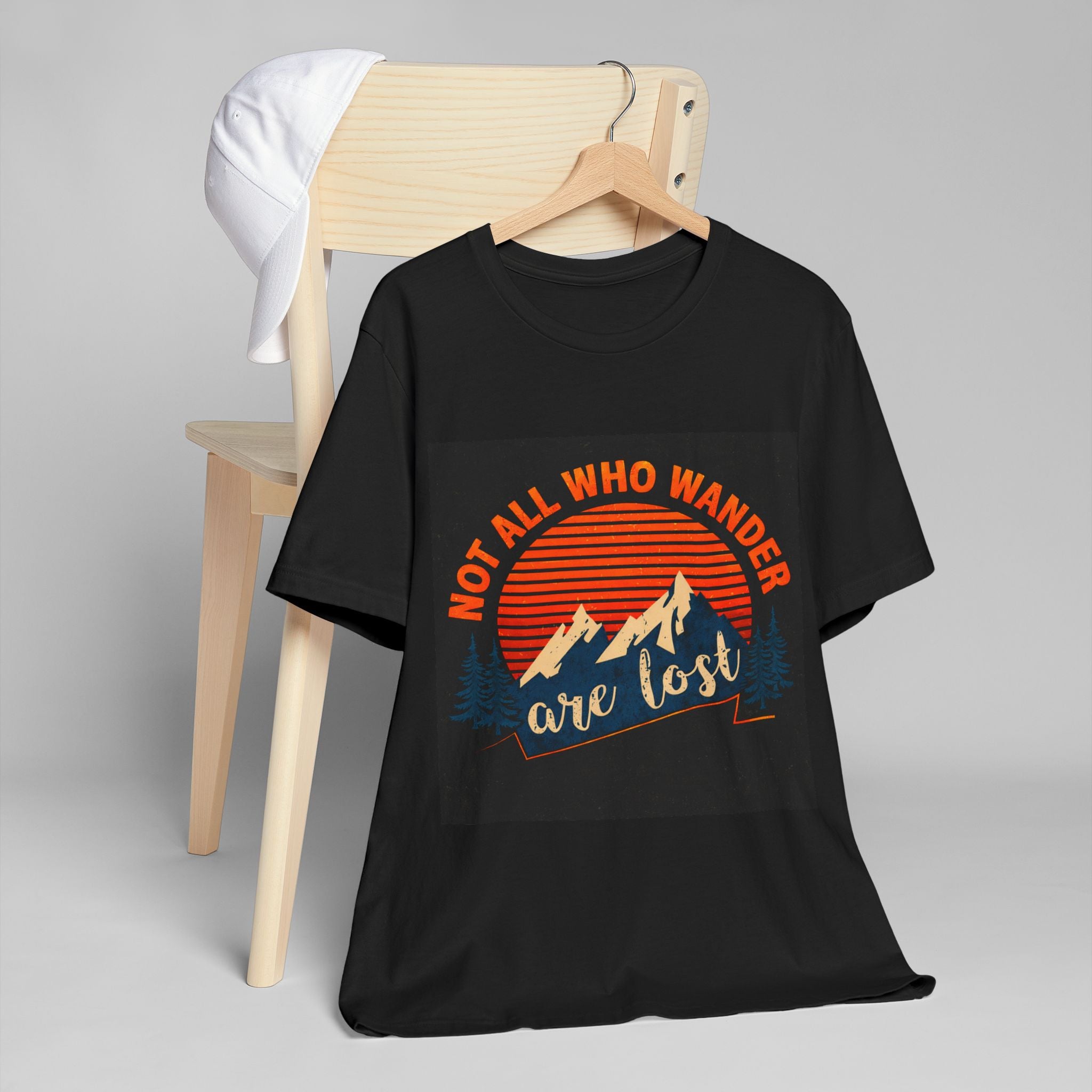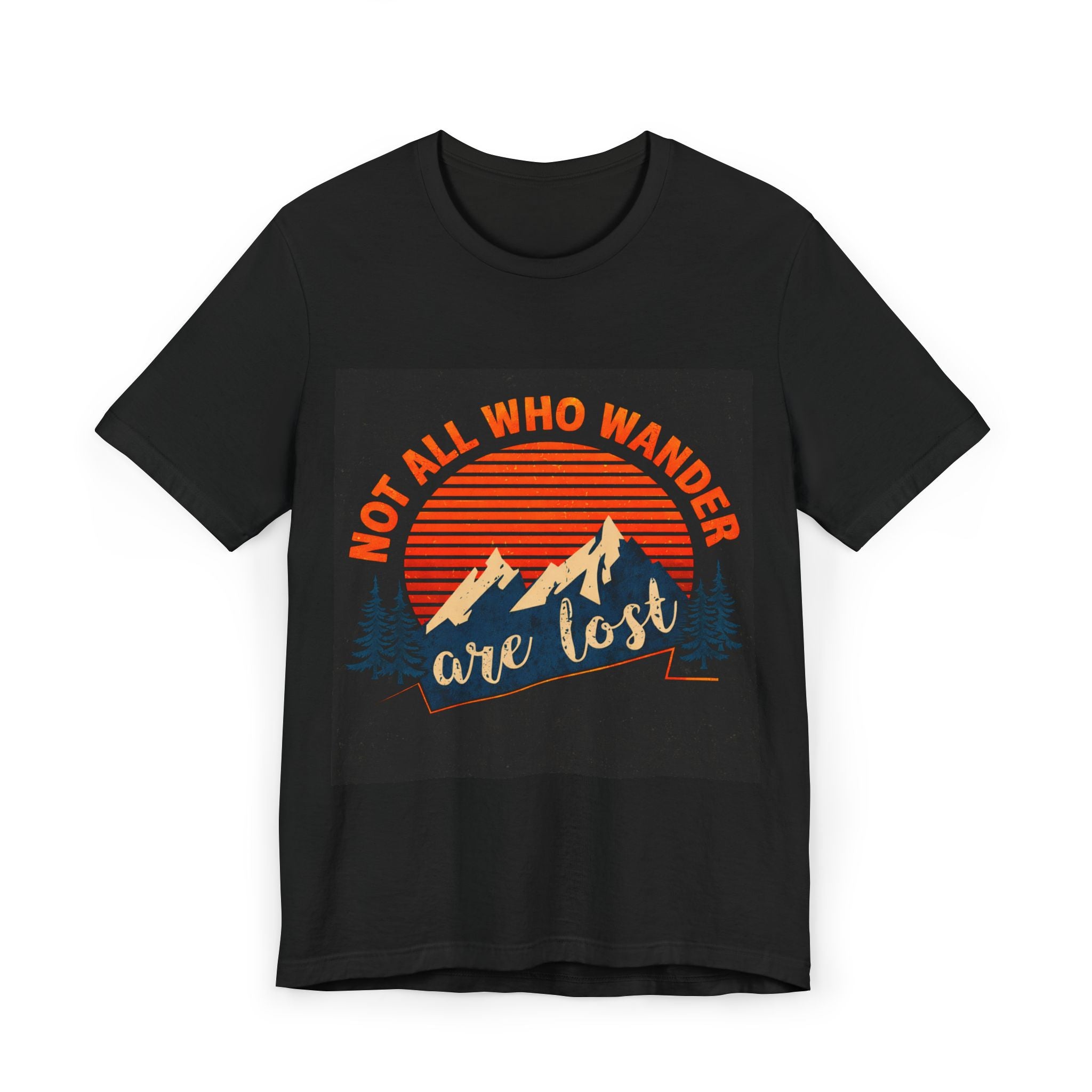 Lightweight, breathable, and built for wandering — this tee carries a vintage-mountain vibe that speaks to people who live for trailheads, twilight drives, and quiet campsites. A warm sunset graphic frames rugged peaks and evergreen silhouettes, while the hand-lettered phrase “are lost” paired with “Not all who wander” invites slow adventures and easy conversations. Wear it layered under a flannel for chilly mornings or solo on summer hikes; the retail fit and crew neckline make it comfortable during movement, while the soft combed cotton keeps it feeling worn-in from the first wear. This shirt feels like the moment just after you crest a ridge and the world opens up — familiar, open, and quietly exhilarating.