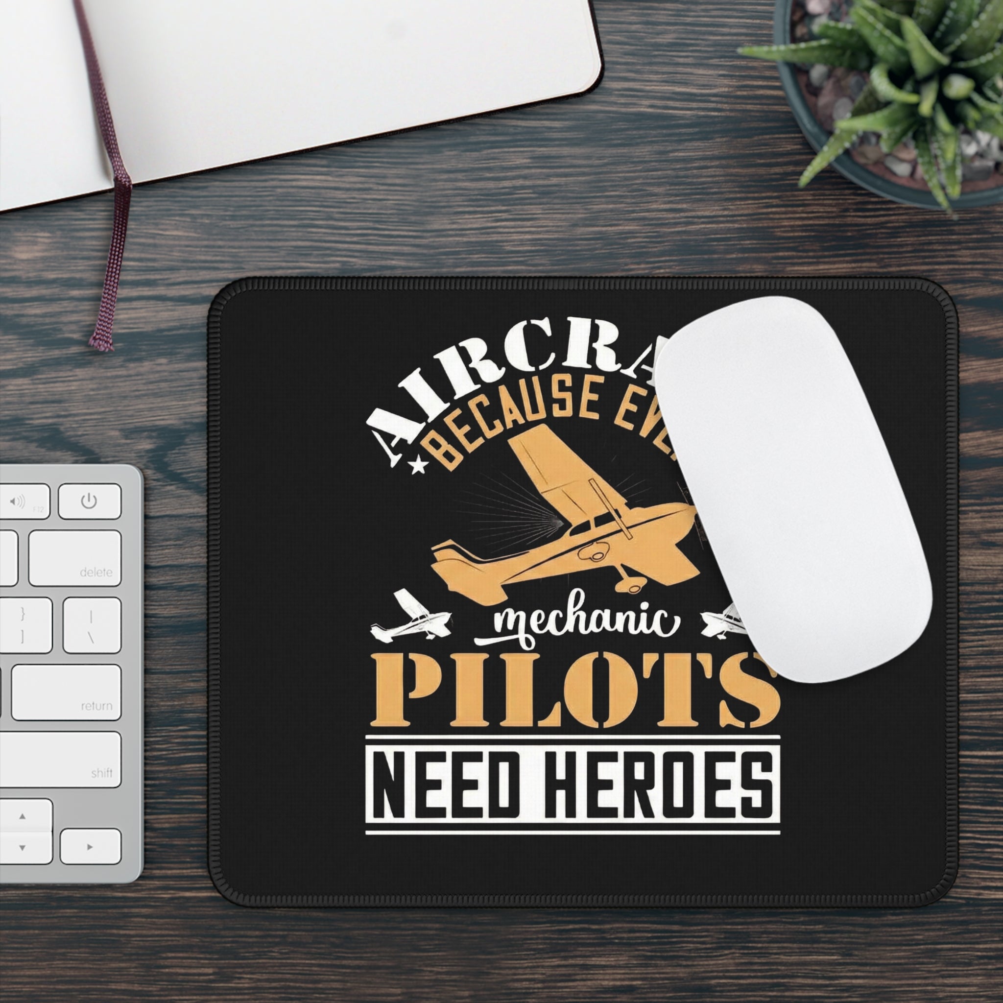 Pilot Mechanic Mouse Pad — "Aircraft Because Even Pilots Need Heroes" Gaming Desk Mat